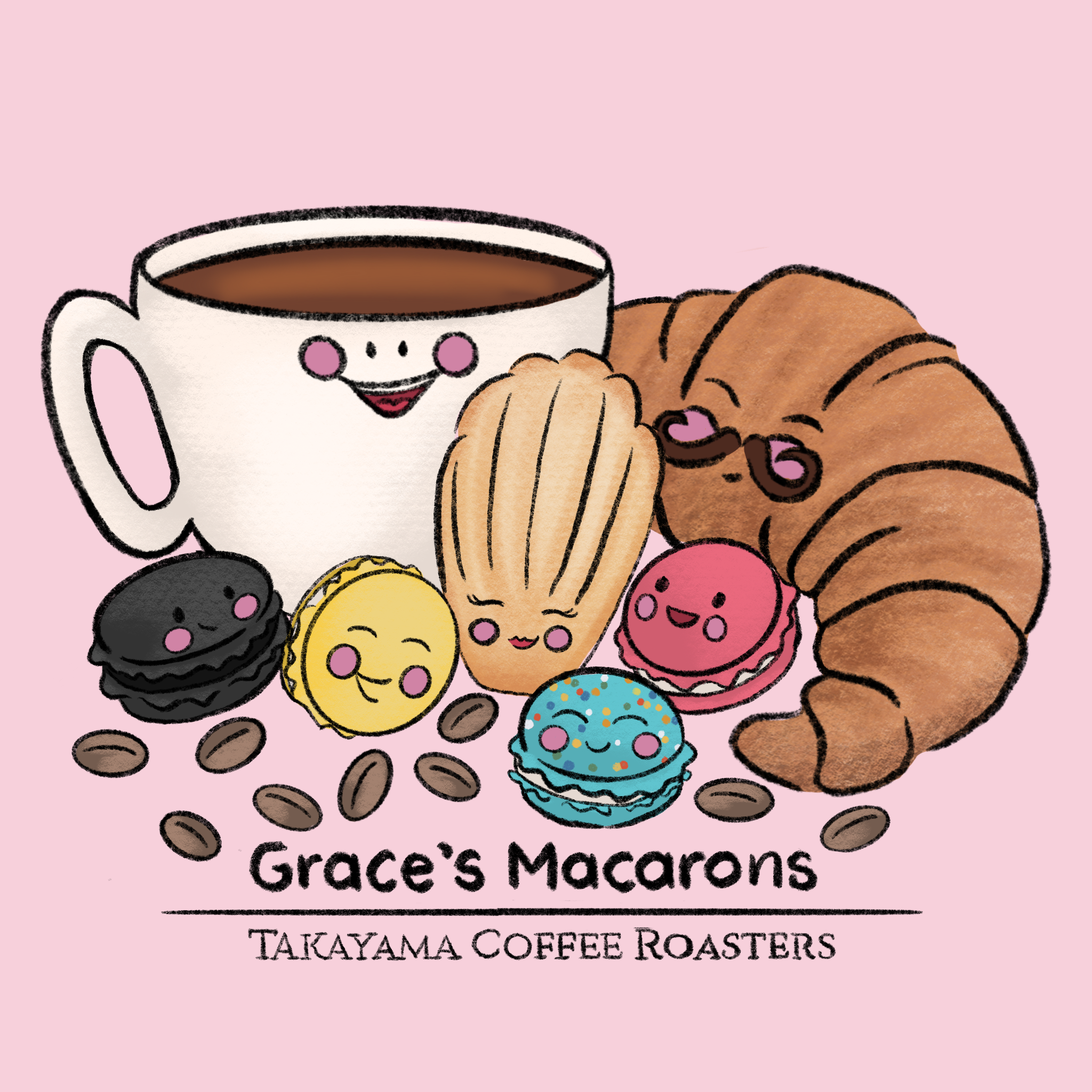 Designed a fun, colorful sticker for this power couple who rock the farmers’ market booth together. This sticker design brings out the sweet vibes of Grace’s Macarons and the rich, bold energy of Takayama Coffee Roasters. Perfect for sticking on your coffee thermos, laptop and just about anywhere!